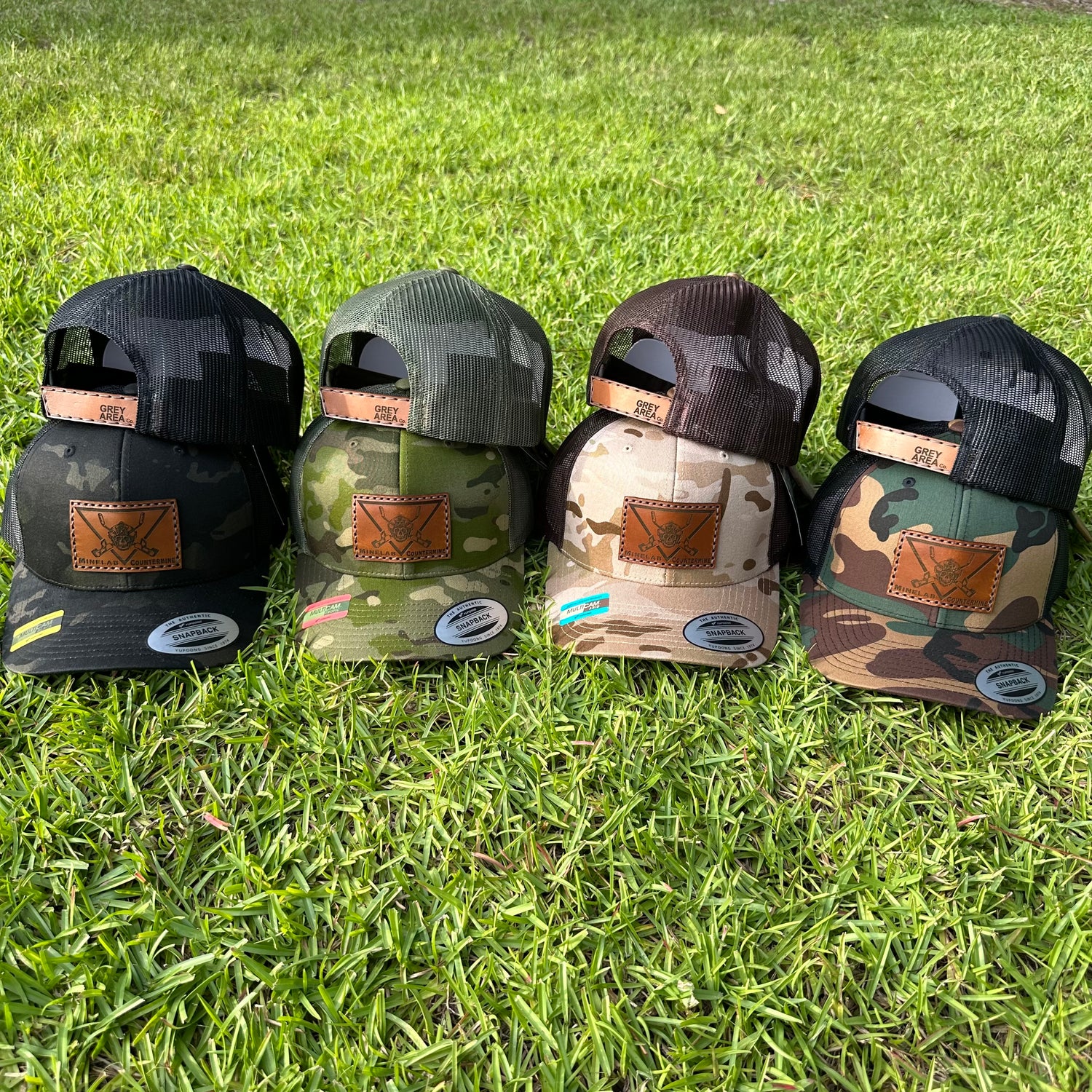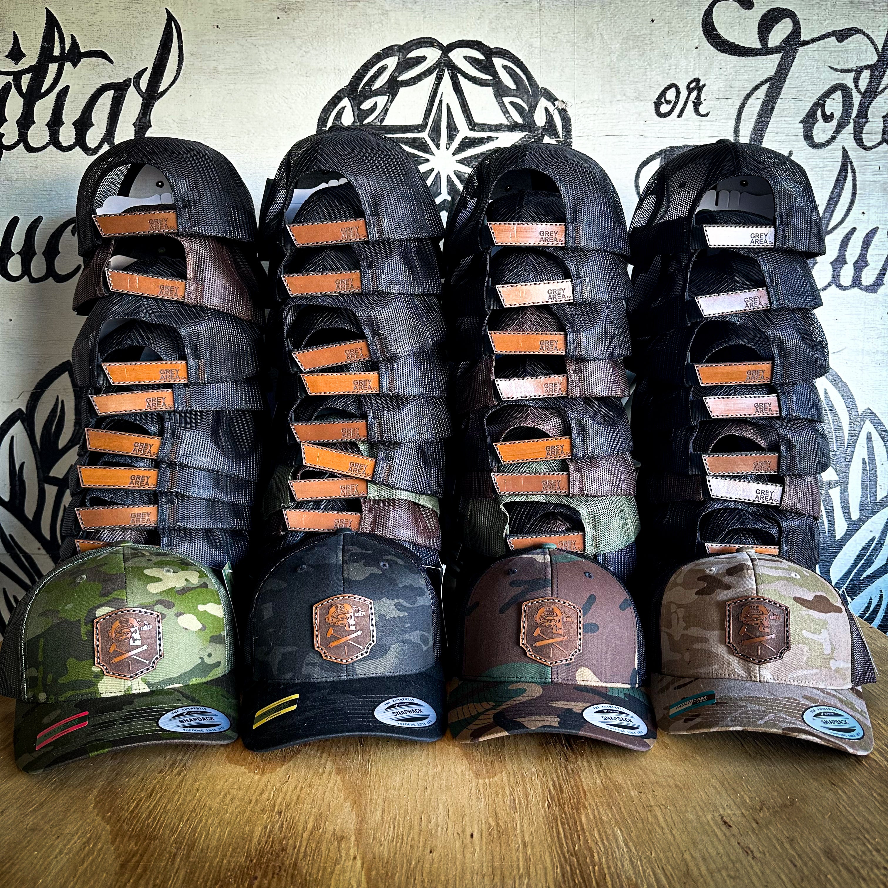 We can customize a variety of hats with laser engraved Horween leather patches as-well as velcro back-straps. All patches are hand finished and sewn to hats for longevity.