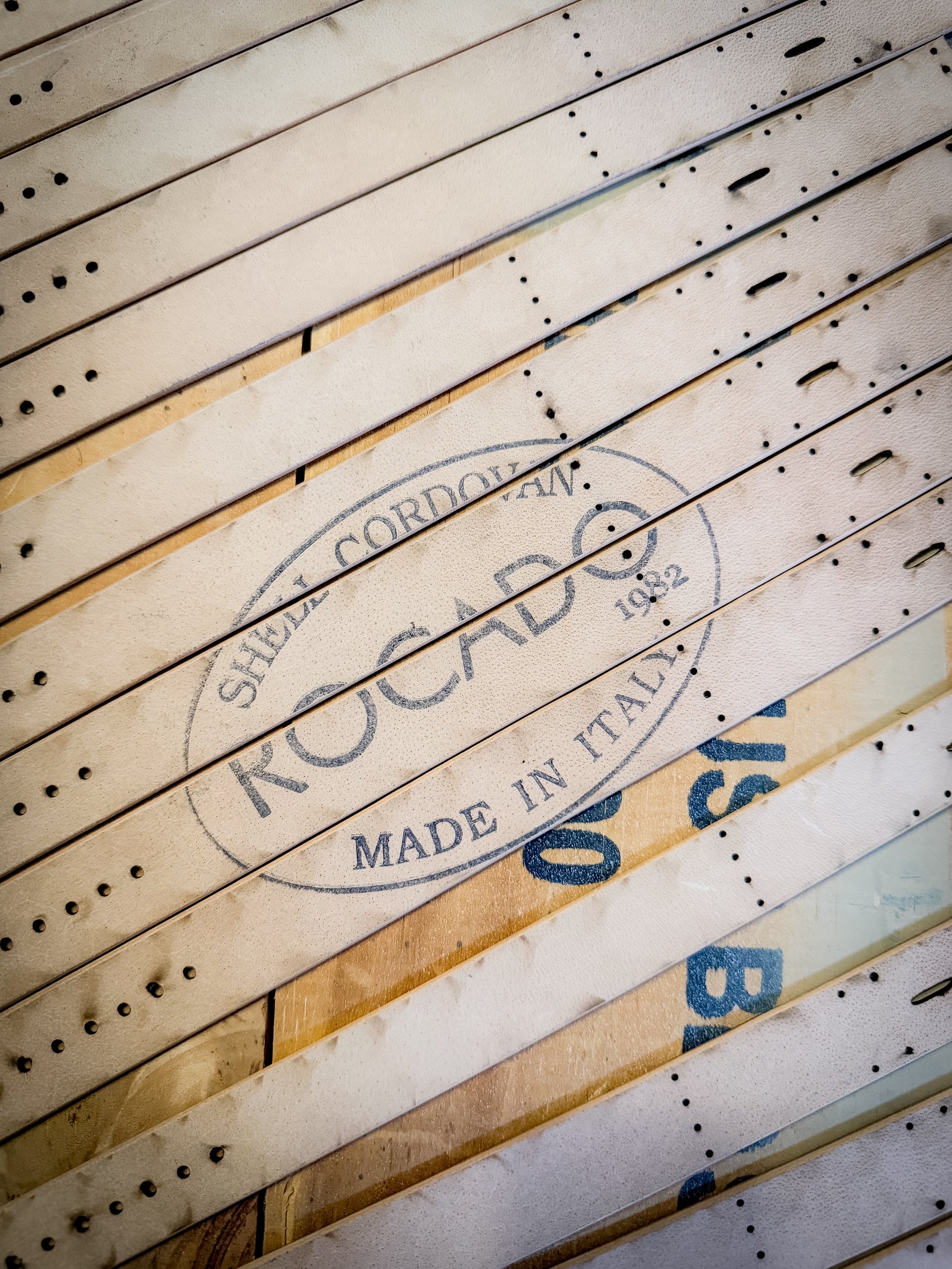 Established in 1982 in a small town in Tuscany, Italy, Rocado has become a premier tannery of genuine shell cordovan. Rocado is a small family owned tannery that focuses on traditional methods such as vegetable tanning processes that can take up to 3 months to produce the leather. Rocado uses many hands on operations including the application of aniline dyes and quality greases. Rocado has a full circle production focus that starts with the raw hide and finishes with the final product.
